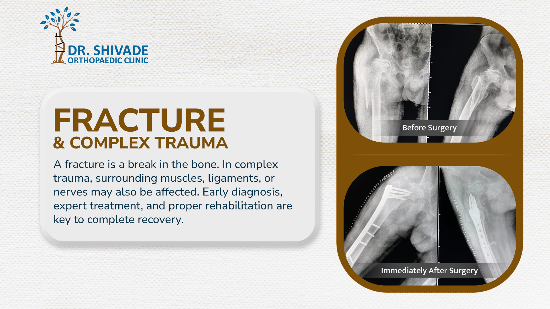 Fractures & Complex Trauma : Complete Guide to Injury, Treatment, and Recovery Dr. Nishant Shivade December 18, 2025 Hip arthritis can make simple movements feel impossible. Learn why the pain happens, early signs you shouldn’t ignore, and the…